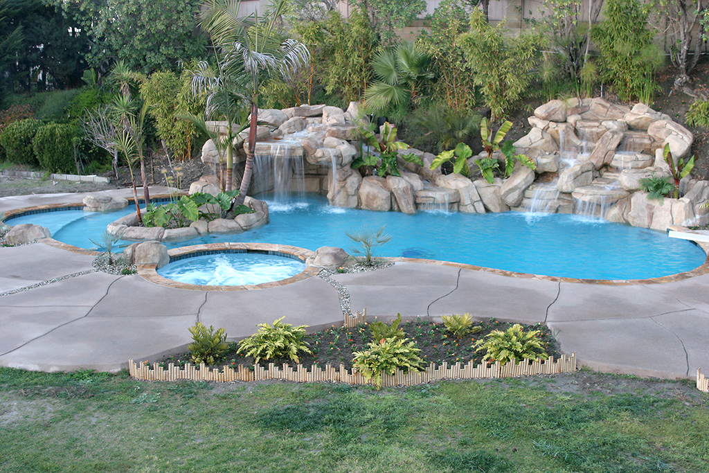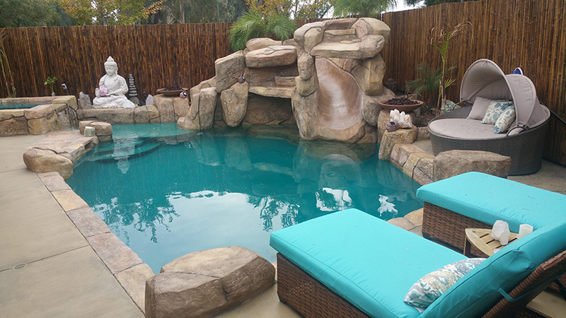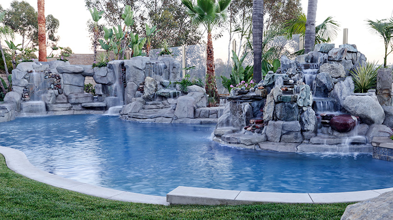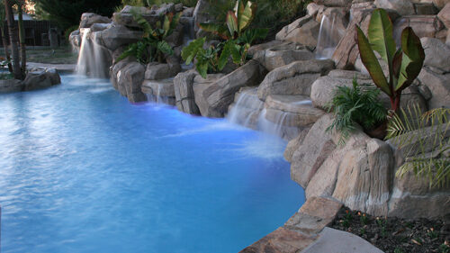 Add a touch of natural beauty to your backyard with artificial rock features, including stunning waterfalls and water elements that create a serene, resort-like ambiance.
